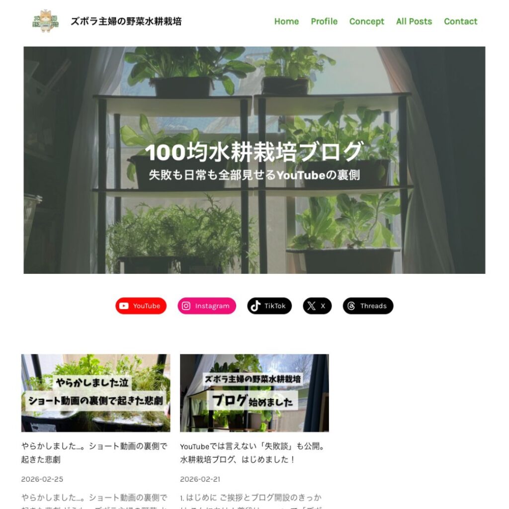 YouTube『ズボラ主婦の野菜水耕栽培』